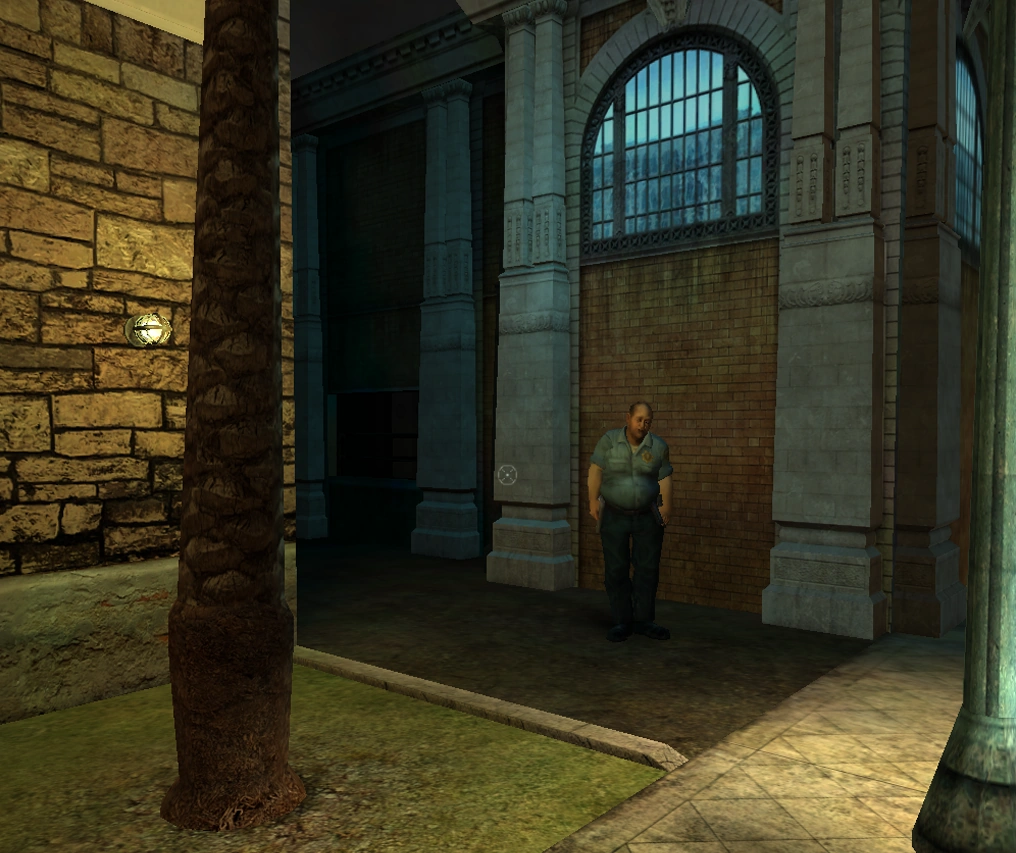 - Si tu personaje es Malkavian, puedes usar Dementación en tu conversación con el guardia de seguridad para convencerlo de que es un inútil, por lo que se pondrá a llorar, no prestando atención a la situación y así dándote paso a la puerta trasera de la Galería.