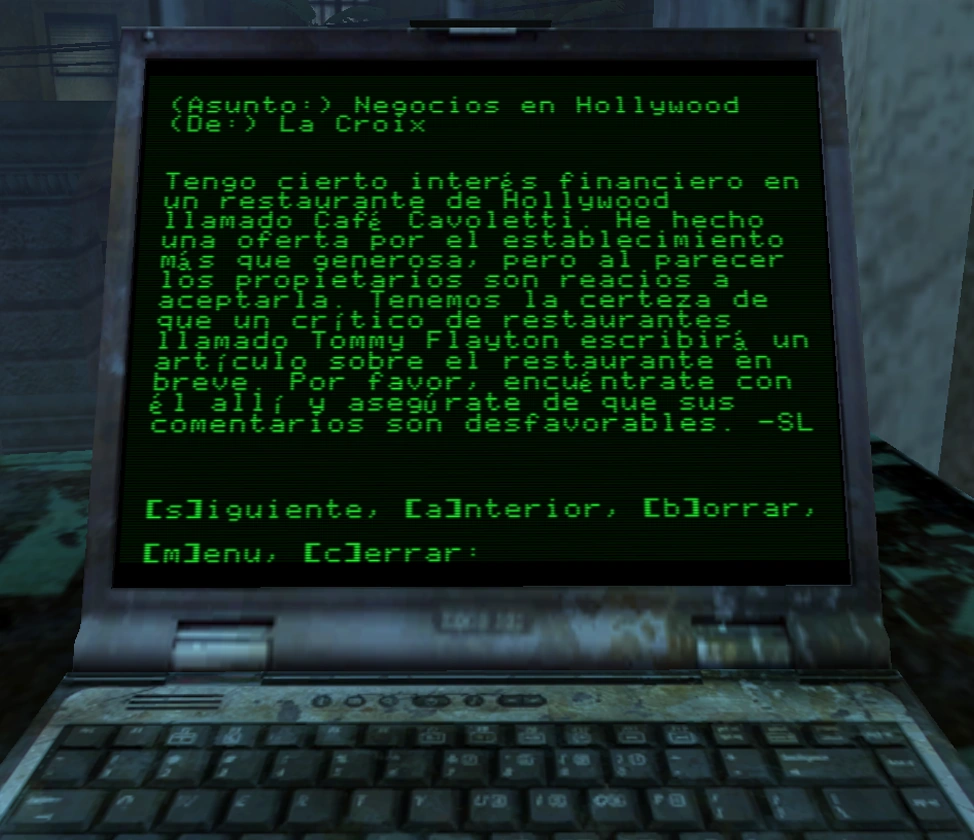 Después de haber accedido al distrito de Hollywood, el príncipe LaCroix te enviará un e-mail diciendo que tiene un interés financiero en el restaurante Café Cavoletti, por el que hizo una oferta, pero los dueños la rechazaron.
