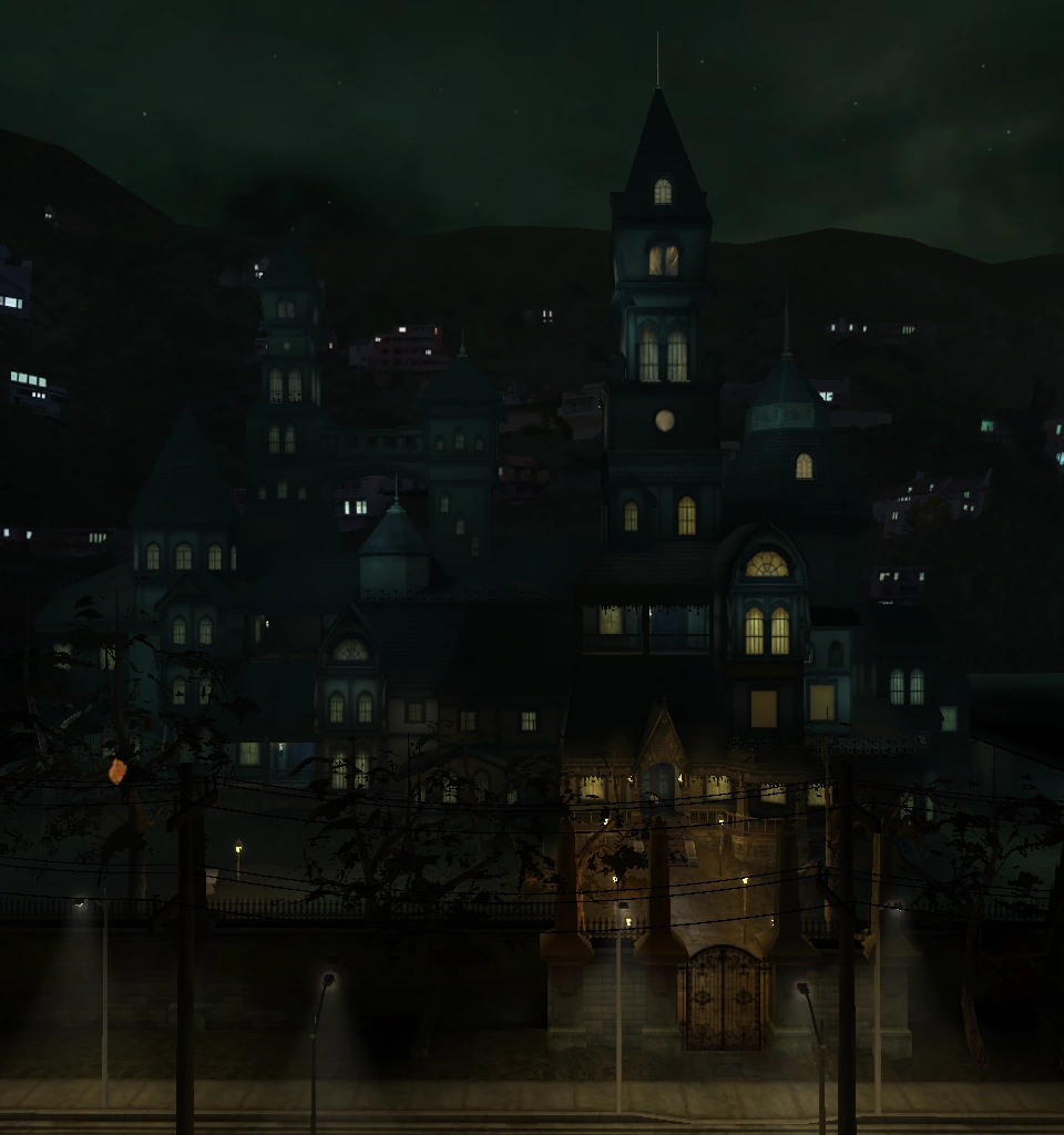 Befitting a Malkavian, this mansion is extremely eerie and eccentric, with many secret corridors and riddles. It also serves as the haven and the personal insane asylum of Dr. Alistair Grout. The mansion is partially destroyed by a fire caused by Grünfeld Bach, a Society of Leopold hunter.